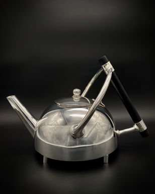 This design appears in the costing book of James Dixon & Sons for 1879 as design model no. 2277, although with variants, and is described as 'English Japanese', pointing to the Japanese influence in some of Dresser's most radical metalwork designs. The silver-plated teapod’s squat hemispherical body is complemented by four raised peg feet, while the black ebonised wood handle offers a beautiful contrast against the silverplated body.