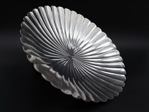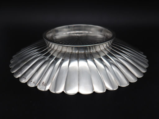 Petal-shaped silver bowl designed by Josef Hoffmann in collaboration with the Wiener Werkstätte, crafted from .900 silver with a polished finish. Supported by a subtly elevated base, the silver bowl’s circular and slightly curved form features a petal-shaped design, that radiates from the center of the piece toward wide, rounded edges. Hoffmann's design is a prime example of Viennese Modernism, artfully combining functionality with elegant simplicity.