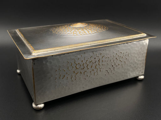 Parallelepipedic box, resting on 4 spheroid bases, with its original wood interior, executed in German Jugendstil style from the first quarter of the 20th century.