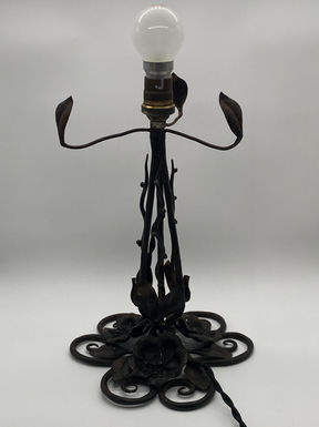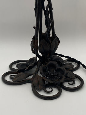 Wrought iron body, satin glass lampshade